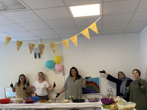 Mit großer Freude und voller Dankbarkeit haben wir am Freitag in der KiTa unser Jubiläum gefeiert. Die Gäste wurden mit einem Buffet von Köstlichkeiten aus aller Welt empfangen und konnten bei sommerlichen Temperaturen die Getränke der Cocktailbar genießen. Die Kinderaktionen, wie Schminken, Zöpfe flechten und die Feuerwehr haben viel Anklang gefunden. Unsere Überraschung war das Mitmach-Konzert der Großstadt-Engel.