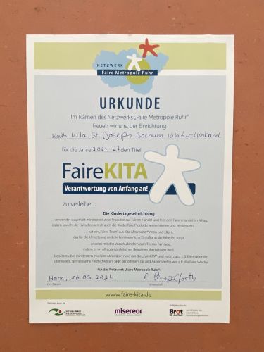 Zum 3. Mal haben wir heute die Titelerneuerung als FaireKiTa erhalten und sind somit für die nächsten 3 Jahre wieder zertifiziert.