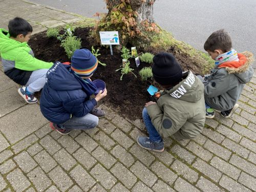 Wir haben eine Beetpatenschaft an der Geitlingstraße, vor unserer KiTa übernommen.
